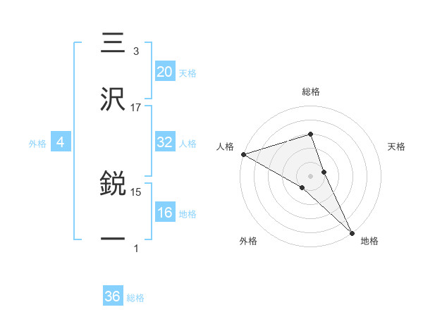 三沢 鋭一さんの総格は36画の3点!