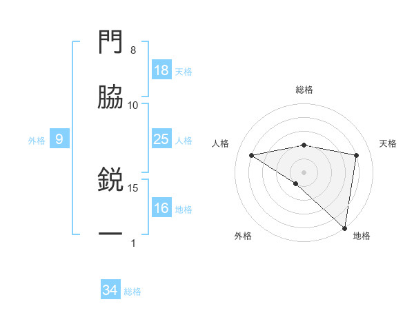 門脇 鋭一さんの総格は34画の2点!