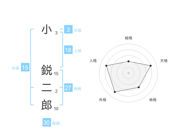 小 鋭二郎さんの総格は30画の2点!
