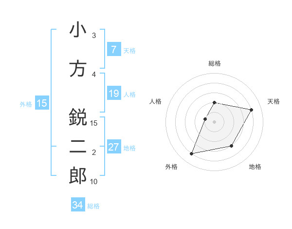小方 鋭二郎さんの総格は34画の2点!