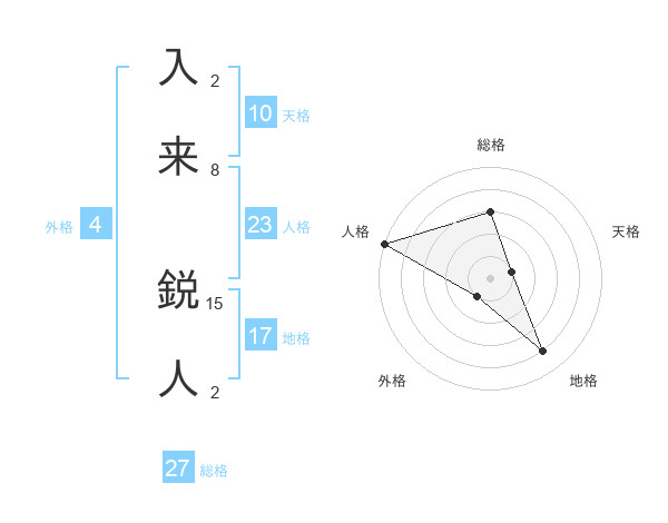入来 鋭人さんを姓名の画数から五運を鑑定