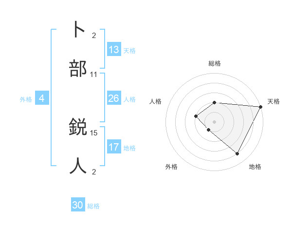 卜部 鋭人さんを姓名の画数から五運を鑑定