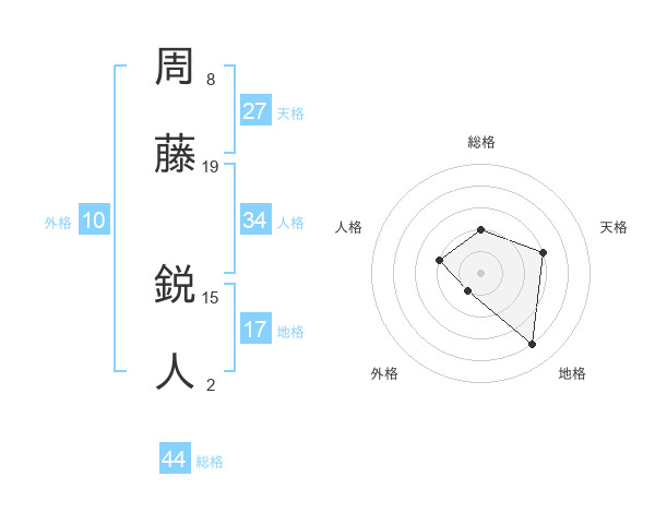周藤 鋭人さんの総格は44画の2点!