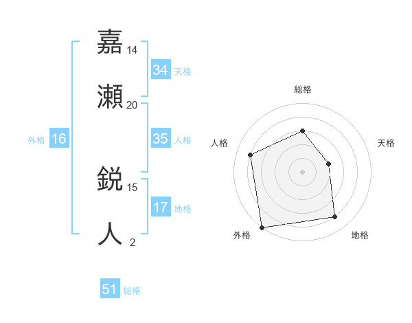 嘉瀬 鋭人さんの総格は51画の3点!