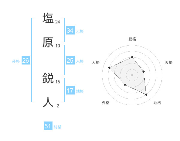 塩原 鋭人さんの総格は51画の3点!