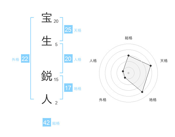 宝生 鋭人さんの総格は42画の3点!