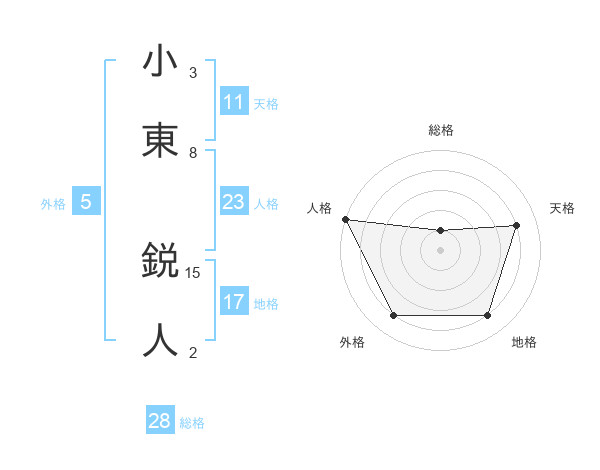 小東 鋭人さんの天格は11画の4点!