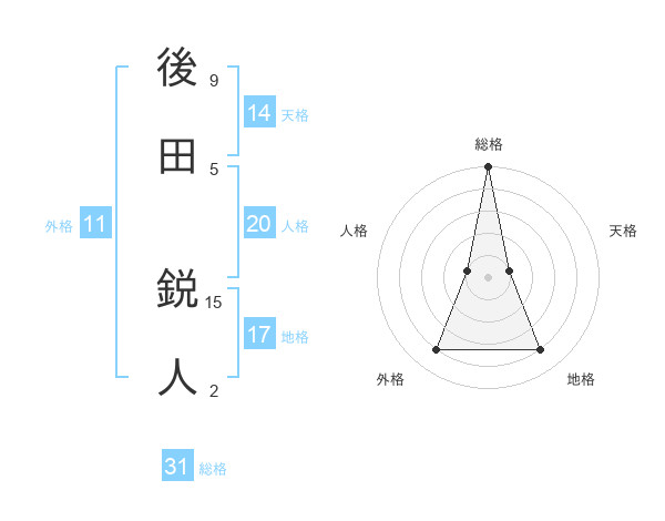 後田 鋭人さんを姓名の画数から五運を鑑定