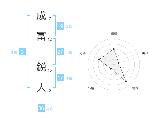 成冨 鋭人さんの天格は19画の1点!