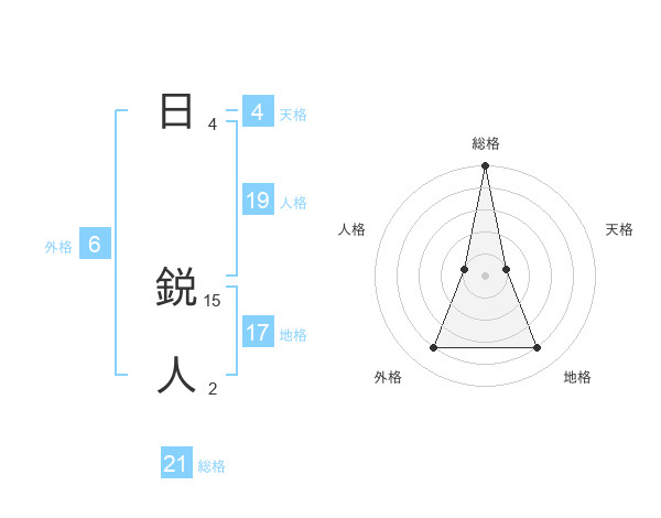 日 鋭人さんの総格は21画の5点!