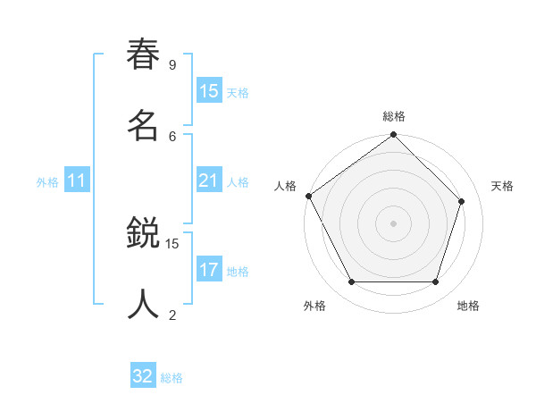 春名 鋭人さんの天格は15画の4点!