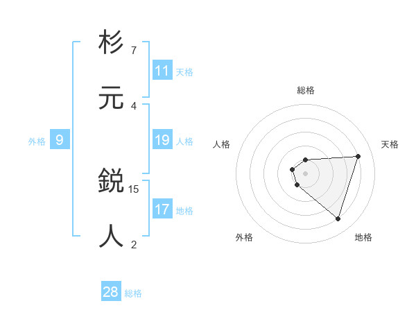 杉元 鋭人さんの地格は17画の4点!