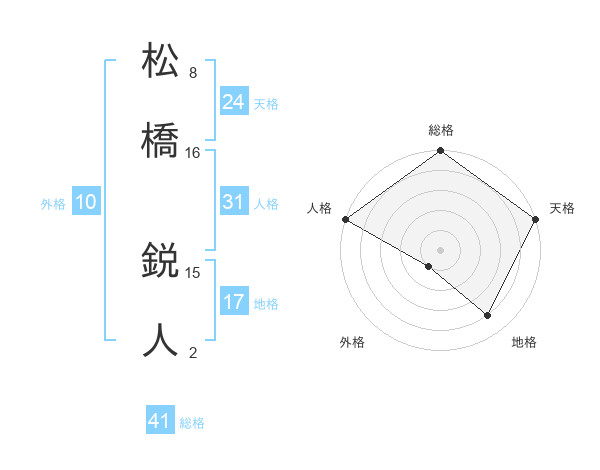 松橋 鋭人さんの地格は17画の4点!