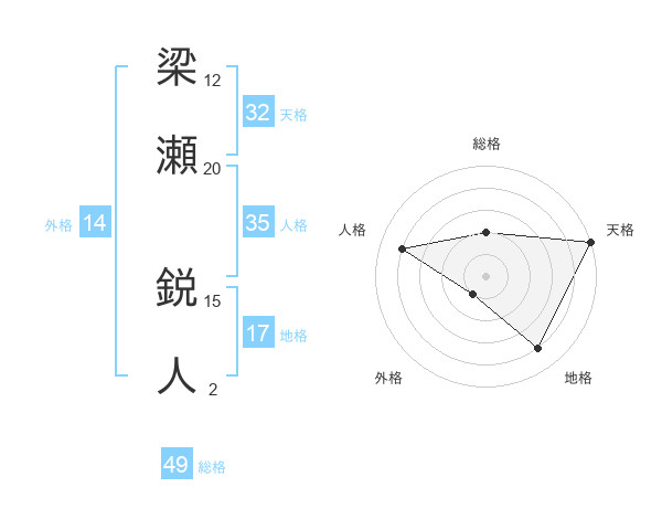 梁瀬 鋭人さんの天格は32画の5点!