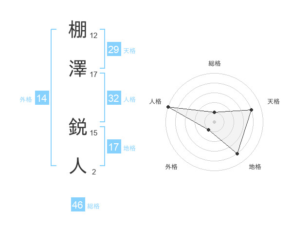 棚澤 鋭人さんの天格は29画の4点!