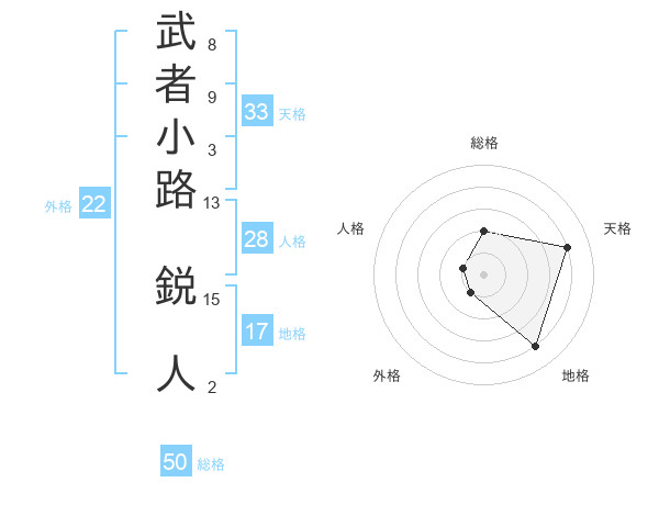 武者小路 鋭人さんの総格は50画の2点!