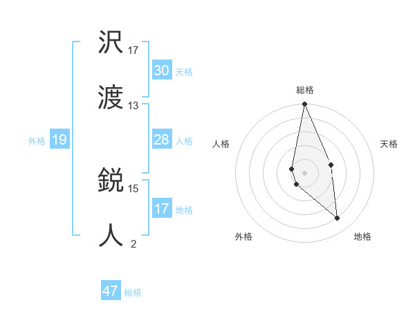 沢渡 鋭人さんを姓名の画数から五運を鑑定