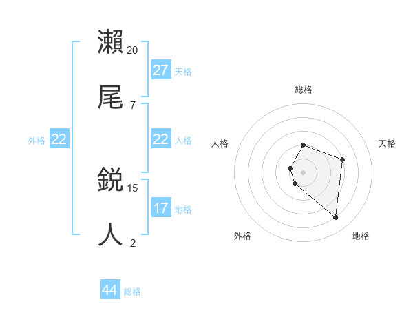 瀨尾 鋭人さんの総格は44画の2点!