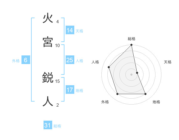 火宮 鋭人さんの総格は31画の5点!