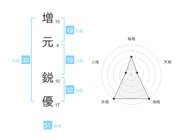 増元 鋭優さんの総格は51画の3点!