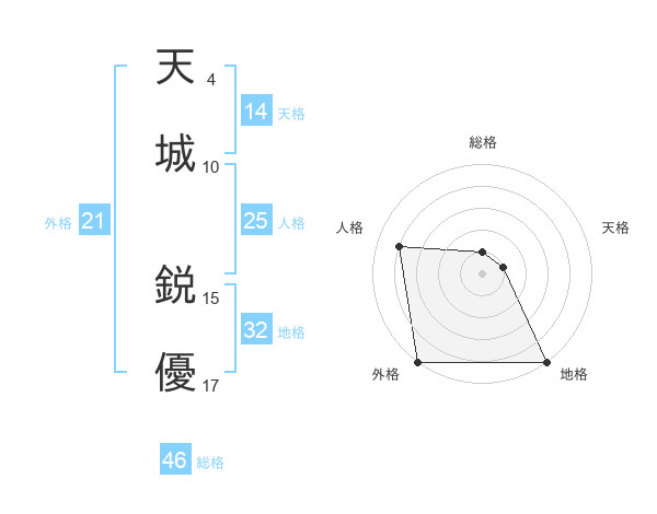 天城 鋭優さんの外格は21画の5点!
