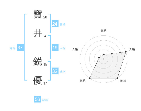 寶井 鋭優さんの外格は37画の5点!