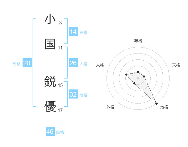 小国 鋭優さんの総格は46画の1点!