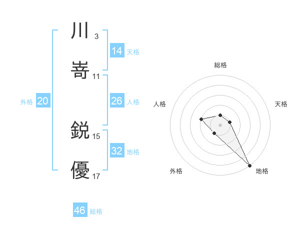 川嵜 鋭優さんを姓名の画数から五運を鑑定