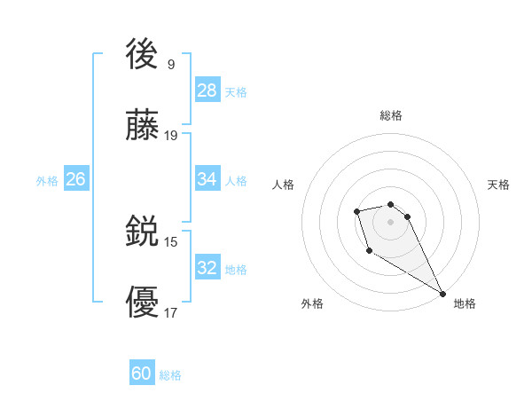 後藤 鋭優さんを姓名の画数から五運を鑑定