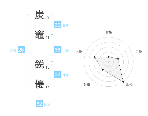 炭竈 鋭優さんの天格は30画の2点!