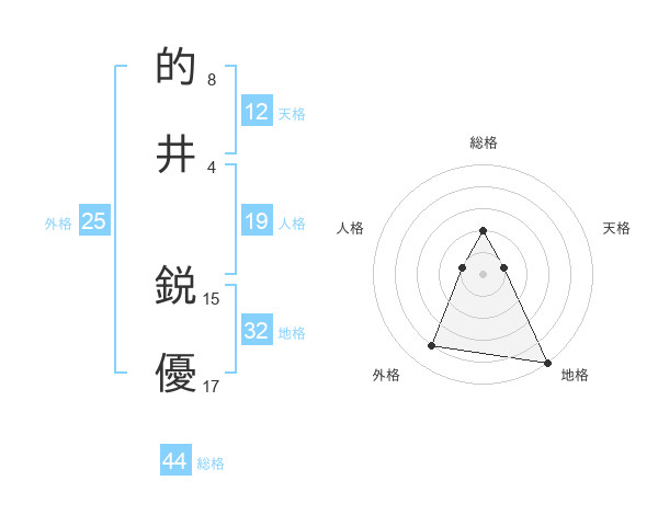 的井 鋭優さんの地格は32画の5点!