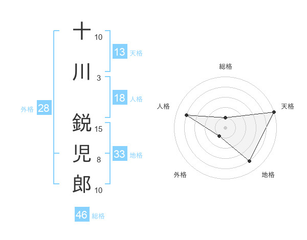 十川 鋭児郎さんの天格は13画の5点!