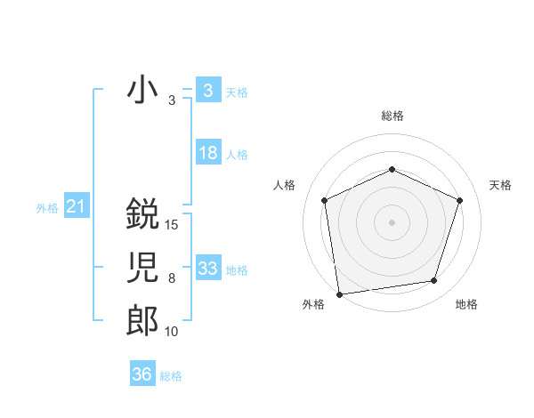 小 鋭児郎さんの総格は36画の3点!