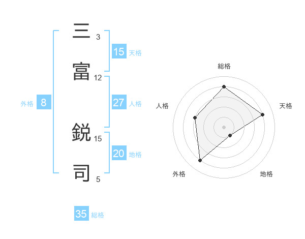 三富 鋭司さんを姓名の画数から五運を鑑定