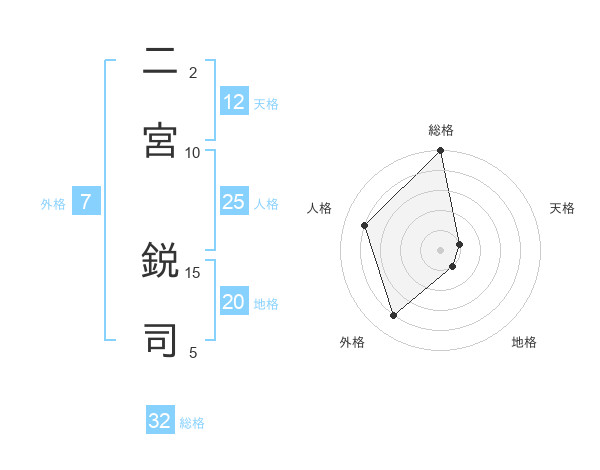 二宮 鋭司さんを姓名の画数から五運を鑑定