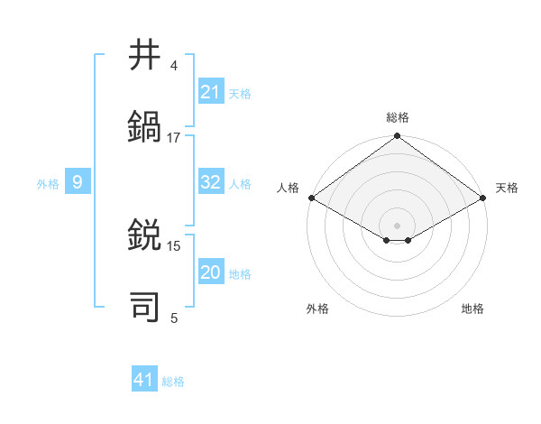 井鍋 鋭司さんの天格は21画の5点!