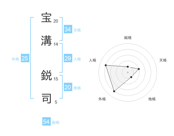 宝溝 鋭司さんを姓名の画数から五運を鑑定