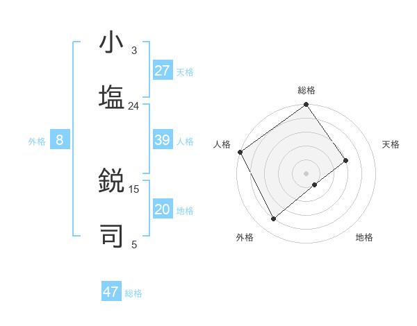 小塩 鋭司さんの総格は47画の5点!