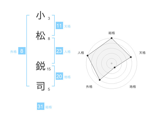 小松 鋭司さんの天格は11画の4点!