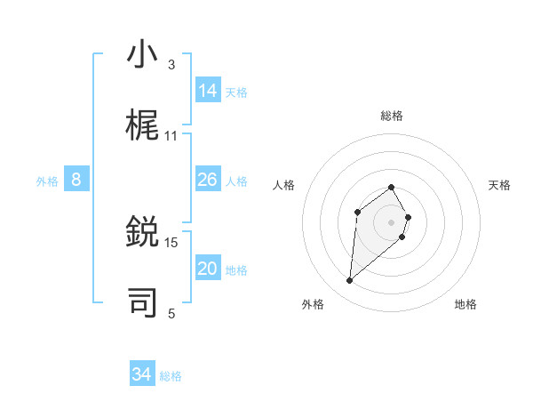 小梶 鋭司さんを姓名の画数から五運を鑑定