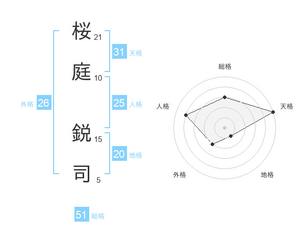 桜庭 鋭司さんの総格は51画の3点!