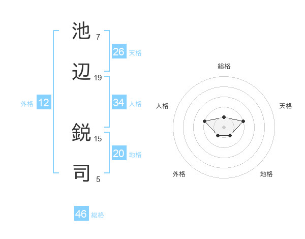 池辺 鋭司さんの総格は46画の1点!