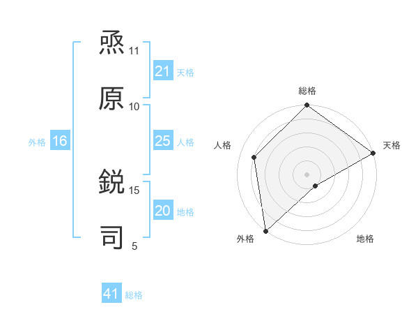 焏原 鋭司さんの総格は41画の5点!
