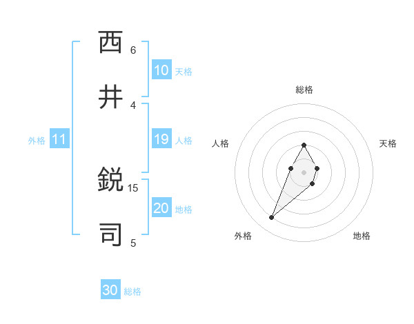 西井 鋭司さんの総格は30画の2点!