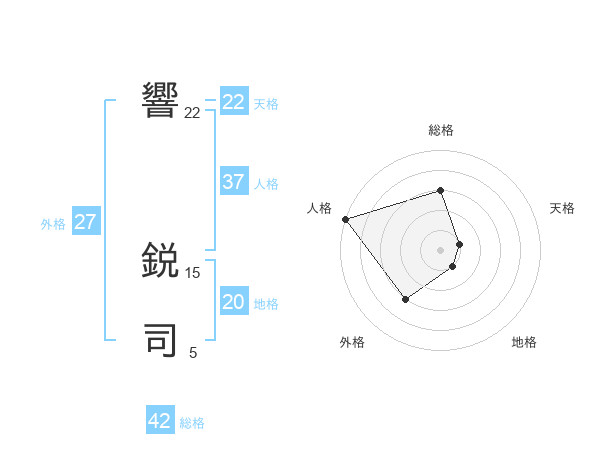 響 鋭司さんの天格は22画の1点!