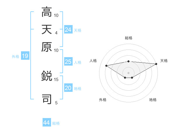 高天原 鋭司さんを姓名の画数から五運を鑑定