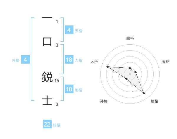 一口 鋭士さんの総格は22画の1点!