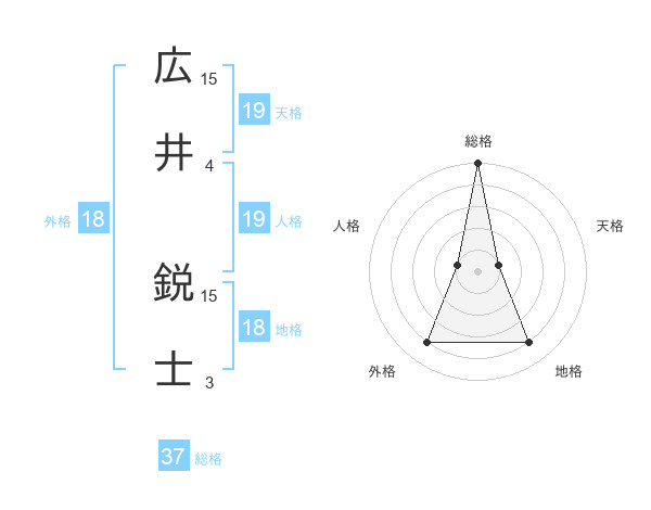広井 鋭士さんの総格は37画の5点!