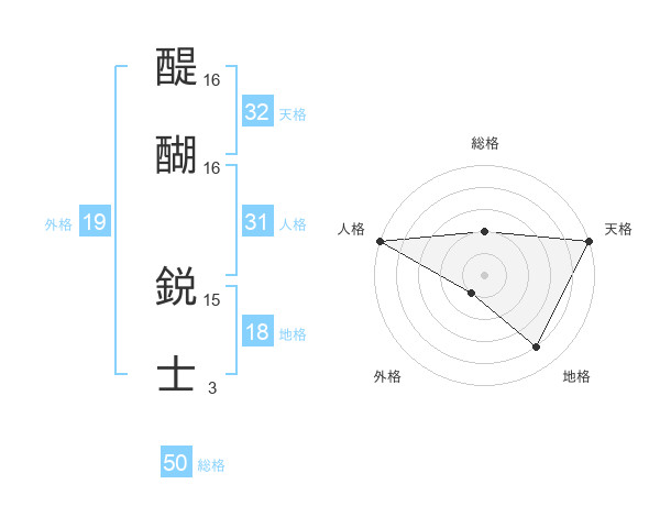 醍醐 鋭士さんを姓名の画数から五運を鑑定