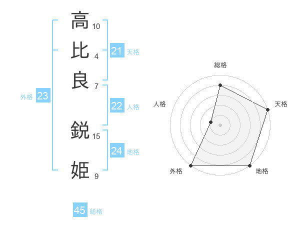 高比良 鋭姫さんの総格は45画の4点!